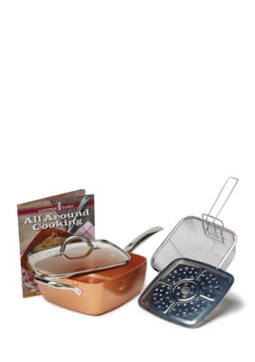 Shop copper chef official the preeminent brand designer of innovative high quality cookware bakeware cutlery and more inspired by the at home chef. Includes pan accessories and our lightweight portable induction cooktop for even more cooking space at home or on the go. Our biggest nonstick family size set has all the tools you need to make an entire meal from start to finish. 11 copper chef xl deep dish casserole pan steamer rack fry basket tempered glass lid eric theiss recipe book ptfe pfoa free heat resistant up to 850 cerami tech non stick outer coating.